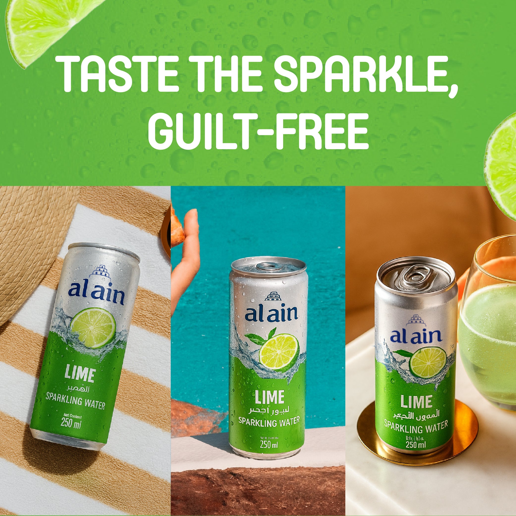• جودة العين الموثوقة - العلامة التجارية الرائدة للمياه في دولة الإمارات العربية المتحدة، متوفرة الآن في علبة ليمون فوارة.